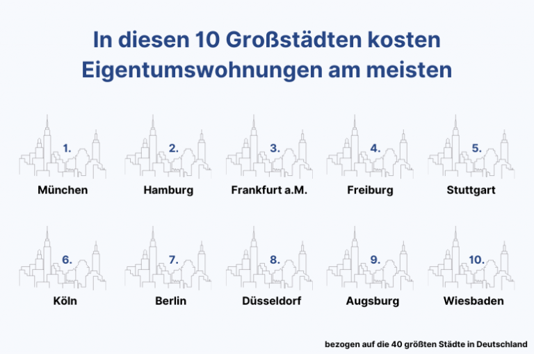 Aus den vorherigen Faktoren ergibt sich dann der Kaufpreis für eine Eigentumswohnung in der jeweiligen Stadt.