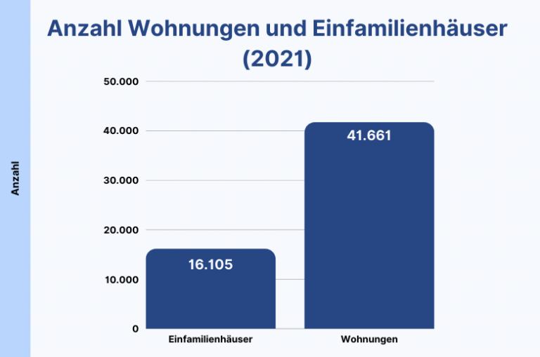 - Es gibt deutlich mehr Wohnungen als Häuser in Deutschland. Im Vergleich: Die Anzahl der Einfamilienhäuser lag 2021 bei 16.105 (vgl. Statista 2022), die Anzahl der Wohnungen bei 41.661 (vgl. Statista 2022).
